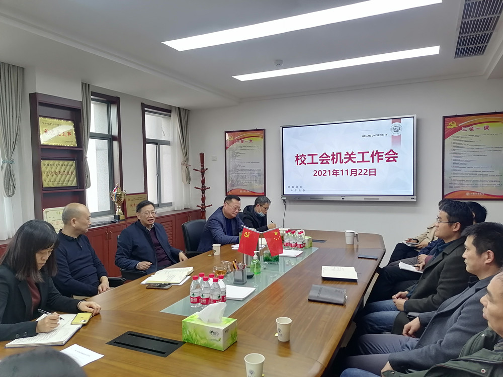 11月22日下午,校工会在行政楼636会议室召开工会机关工作会议,校工会机关全体人员参加了会议,落实“双代会”等相关准备工作。校党委副书记张宝明到会指导,会议由校工会副主席边海潮主持。