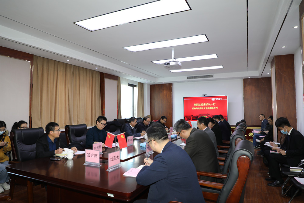 校党委常委、宣传部部长王明钦对马克思主义学院在学科建设、师资队伍建设等方面取得成绩表示肯定,同时指出学院还存在师资力量作用发挥不充分、课程政策落实不具体等问题。他表示,学校高度重视马克思主义学院发展,下一步,学院要落实好省委巡视组反馈意见,在全校范围内推进思政课程和课程思政建设,在保持现有教师队伍稳定性的同时聘请兼职教师作为补充,运用多种手段上好思政课。他还就打造学生思政活动品牌、加强与学校相关职能部门联系、做好十九届六中全会精神宣讲等方面提出具体建议。
