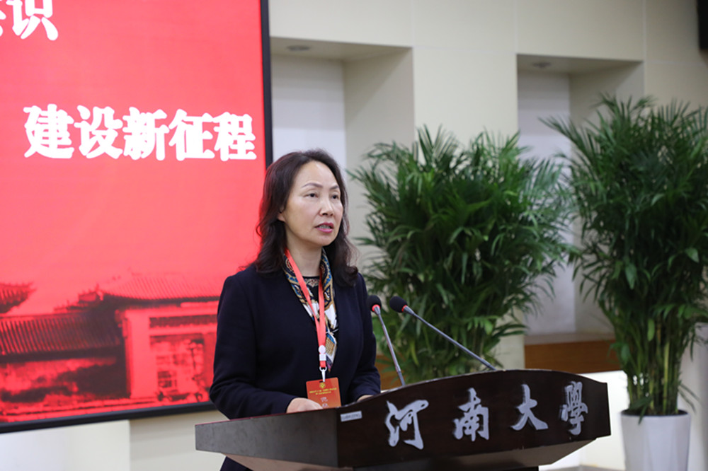 校党委常委、副校长谭贞向大会作《关于<河南大学章程(修订草案)>的情况说明》,围绕章程修订原因和章程总则、人员、组织结构、治理体系等修订内容进行阐释。