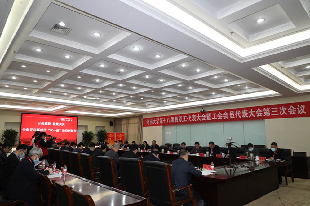 会议表决通过了《河南大学十八届三次教职工代表大会暨工会会员代表大会关于学校工作报告的决议》《河南大学十八届三次教职工代表大会暨工会会员代表大会关于工会工作报告的决议》《河南大学十八届三次教职工代表大会暨工会会员代表大会关于<河南大学章程(修订草案)>的决议》《河南大学十八届三次教职工代表大会暨工会会员代表大会关于河南大学“十四五”事业发展规划和二〇三五年远景目标纲要的决议》,宣布了调整后的十八届工会经费审查委员会及各专门委员会成员名单。