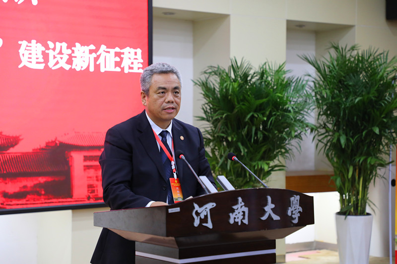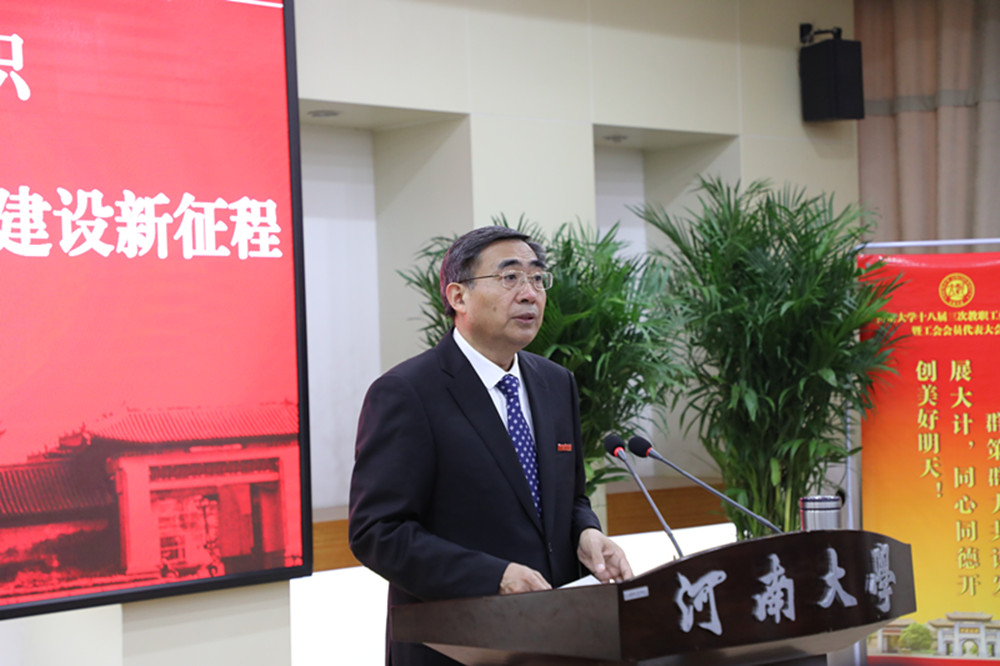 校党委书记卢克平发表讲话。他表示,会议期间,各代表认真履行职责,听取并审议了学校工作报告、工会工作报告、财务工作报告,审议并讨论通过了《河南大学章程》《河南大学“十四五”事业发展规划和二〇三五年远景目标纲要》,表现出强烈的爱校荣校情怀和兴校强校担当。他强调,经过首轮“双一流”建设,学校事业发展取得了里程碑式的重大突破,综合实力和核心竞争力大幅提升,具备了建设一流大学的良好基础。大学文化是大学软实力的重要指标,一流的大学文化不仅为学校高质量发展提供内生动力,也为破解大学治理困境提供方向性指引。坚持问题导向,建设一流的大学文化,着重要在以下几个方面下工夫:一是涵养爱校荣校的情怀。河大的兴衰荣辱与每个教职工生的发展和前途息息相关。对每个河大人来说,爱校荣校是本分,也是职责,是心之所系、情之所归。让“爱校”成为一种习惯,让“荣校”成为一种自觉,让“兴校”成为一种担当,要把这种发自内心的深沉而执着的情感,转化为建设一流大学、振兴百年名校的强大动力和实际行动。二是树牢依法办事的意识。我们建设的一流大学,必然是民主法治的大学。广大教职工作为创建一流大学的主体,要带头崇尚法治,信仰法律,尊重法律,依法办事;要自觉按学校的制度和程序办事,依规主张、保护自己的权利,同时承认、尊重他人的权利,对制度不搞有选择性的执行。三是营造竞争包容的氛围。竞争产生动力,包容汇聚合力。我们构建的大学文化是既鼓励竞争、又倡导包容,单位之间、学科之间、同事之间要在相互欣赏、相互理解、相互支持下营造各美其美、美人之美、美美与共的文化氛围。在竞争中既要有奋勇争先的意识,更要有相互成就的格局,在服务学校事业发展中实现良性竞争、合作共赢。四是弘扬实干奋斗的精神。要进一步强化“窗口期”意识,与时间赛跑,给自我加压,不等不靠,抢抓机遇;要进一步转变工作作风,“实”字当头、“干”字为先,带头改革实践,一步一个脚印朝着梦想前进;要进一步弘扬河大精神,百折不挠、自强不息,排除万难、直至胜利。五是鼓足敢于斗争的勇气。一所大学发展得快不快、好不好,关键在于是否有风清气正的政治生态,是否有安全稳定的发展环境。全体师生要继续发扬斗争精神,面对大是大非敢于表明态度,与学校党委保持一致,旗帜鲜明,立场坚定。
