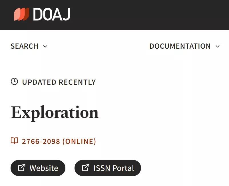 近日,由河南大学主办、Wiley出版集团出版发行的开放获取期刊Exploration,在通过全球最具影响力的开放存取期刊目录 (Directory of Open Access Journals, DOAJ) 的评估后,正式被DOAJ数据库收录。