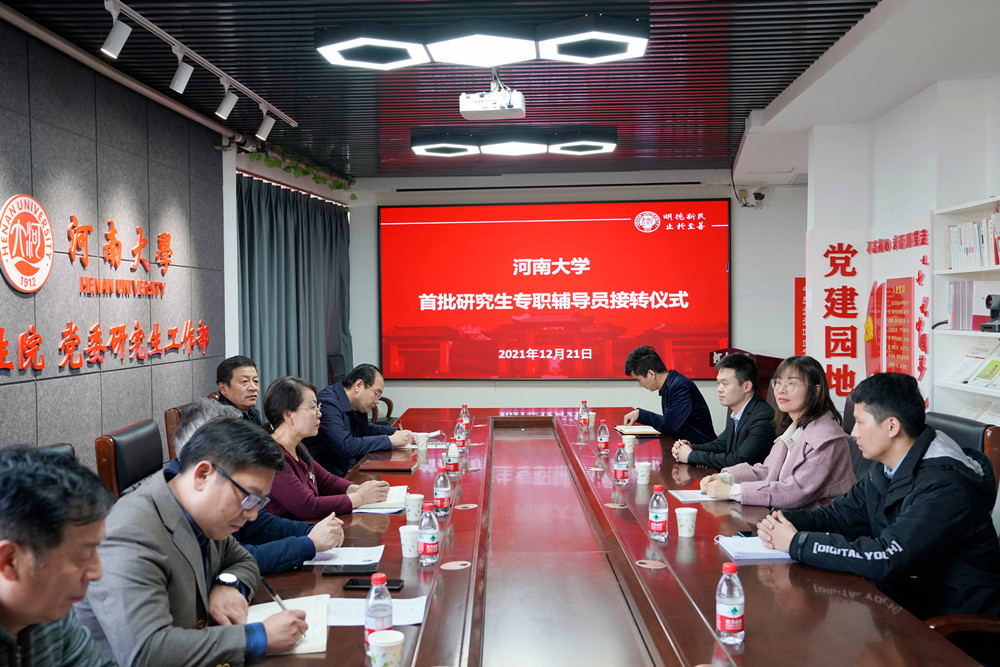 12月21日下午,我校首批研究生专职辅导员接转仪式在金明校区研究生院会议室举行。研究生院常务副院长苗琛、党委研究生工作部部长杜静,经济学院党委书记田歧立、商学院党委书记冯海清、纳米材料工程研究中心主任张平余、教育学部党委副书记王刚,以及新聘用的研究生专职辅导员参加了转接仪式。仪式由党委研究生工作部副部长张烁主持。