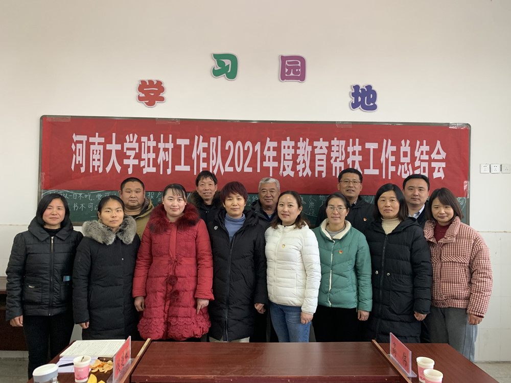 12月23日下午,为加强教育帮扶力度,总结前期教育帮扶工作经验,制定下一步帮扶计划,推动建立结对帮扶长效机制,做好巩固拓展教育帮扶成果,河南大学驻双楼村工作队组织召开双楼小学2021年度教育帮扶工作总结座谈会。河南大学附属小学副校长刘小丽、教师代表宋磊,河南大学幼儿园副园长孔辉、教师代表王翠萍应邀出席座谈会,双楼村两委干部、双楼小学全体教师参加了座谈会。会议在双楼小学会议室召开,驻村工作队队长车颍涛主持。