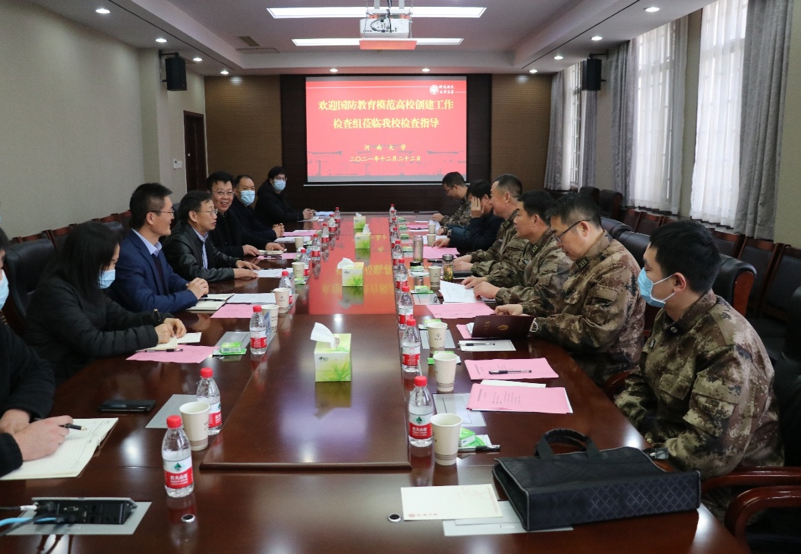 12月22日上午,我校在行政楼308会议室迎接“河南省国防教育模范高校”创建工作检查考评。开封军分区大校副司令员崔瑜、政治工作处上校主任江同山、军分区动员处、军分区政治工作处、顺河区人武部、市委宣传部、市教体局相关人员到我校检查考评创建工作。校党委副书记张宝明出席会议,学院辅导员代表、学生代表、人民武装部、军事理论教研部全体成员参加会议。会议由人民武装部部长王志乾主持。