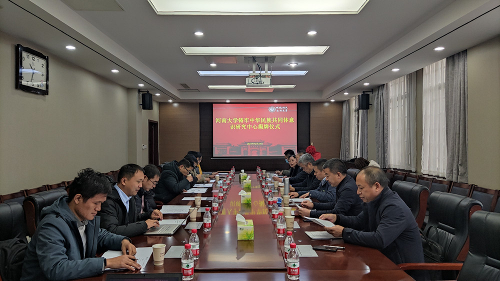 12月24日上午,河南大学铸牢中华民族共同体意识研究中心揭牌仪式在河南大学金明校区308会议室举行。校党委书记卢克平、党委副书记季波、党委常委、副校长孙君健,人文社科研究院院长桓占伟、人事处副处长尹猛、黄河文明与可持续发展研究中心副主任陈家涛,河南大学铸牢中华民族共同体意识研究中心教师代表等出席揭牌仪式。仪式由党委统战部副部长于红英主持。