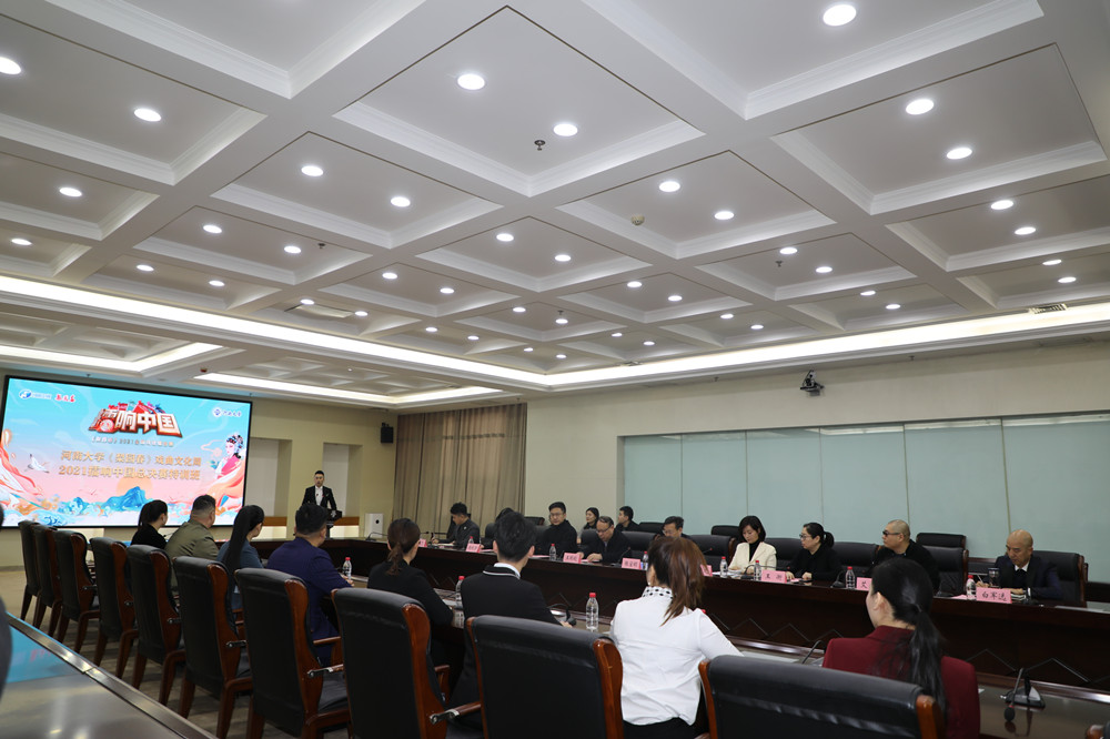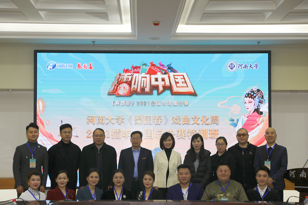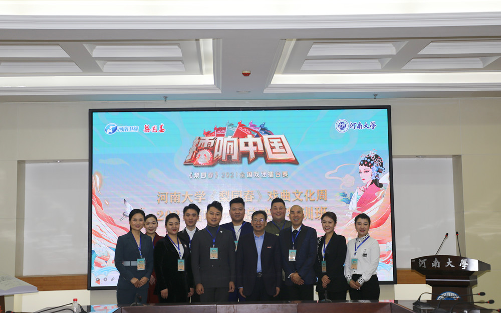 近日,河南电视台戏曲品牌栏目《梨园春》走进我校开展“戏曲文化周”系列活动。12月28日上午,河南大学《梨园春》戏曲文化周2021擂响中国总决赛特训班开班仪式在我校金明校区图书馆三楼会议室举行。我校党委副书记张宝明,河南卫视副总监、《梨园春》栏目总导演庞晓戈,《梨园春》明星擂主、2021擂响中国总决赛参赛选手,我校党委宣传部、音乐学院相关负责人等参加开班仪式。