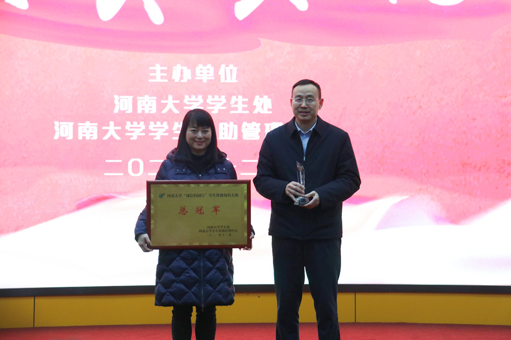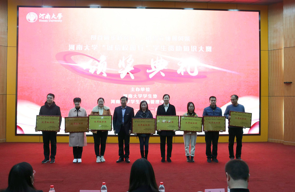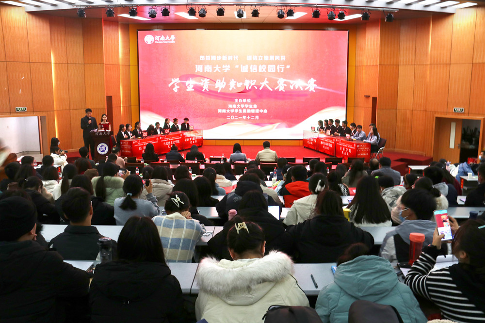 为深入贯彻落实全国全省高校思想政治工作会议和教育大会精神,积极宣传党和国家的学生资助政策与成效,进一步营造形式多样、健康向上的诚信校园文化氛围,12月23日下午,我校在金明校区计算机二楼报告厅举办“诚信校园行”学生资助知识大赛决赛。校党委副书记张宝明出席比赛,学生处处长、学生资助管理中心主任王友成、校团委书记沙莎、相关职能部门负责人、各学院党委副书记、资助工作专员及学生代表400余人到场观摩。