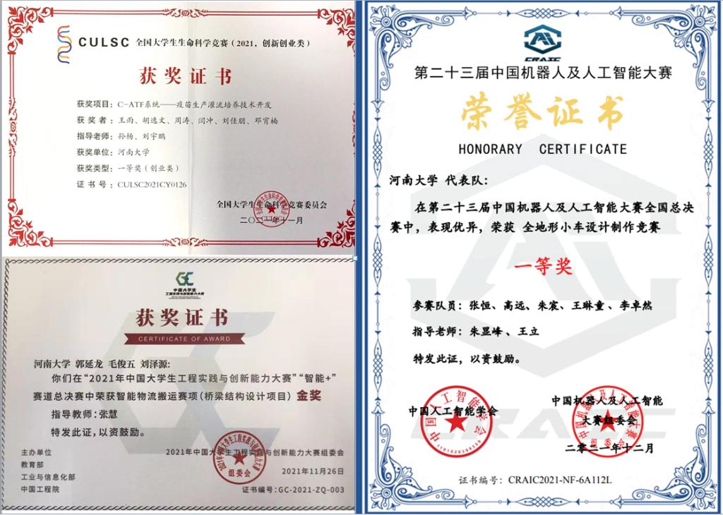 2021年,河南大学承办了“正大杯”第十一届全国大学生市场调查与分析大赛本科组总决赛、第三届全国大学生智能技术应用大赛总决赛、第五届河南省高等学校信息安全对抗大赛、第九届全国高校数字艺术设计大赛(NCDA)河南赛区决赛、第二十三届中国机器人及人工智能大赛河南赛区决赛、第十五届全国大学生化工设计竞赛华中赛区决赛等一系列国家级、省级重要赛事。莘莘学子们参加了《全国普通高校学科竞赛排行榜》中包含的多项赛事并取得了优异的成绩。中国高等教育学会高校竞赛评估与管理体系研究工作组发布的2020全国普通高校大学生竞赛排行榜显示,在2016-2020年榜单中,河南大学在本科高校总榜中排名90,在“双一流”高校中排名60。