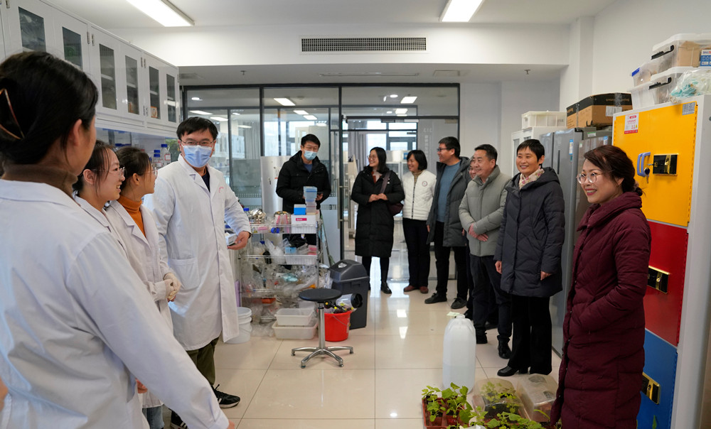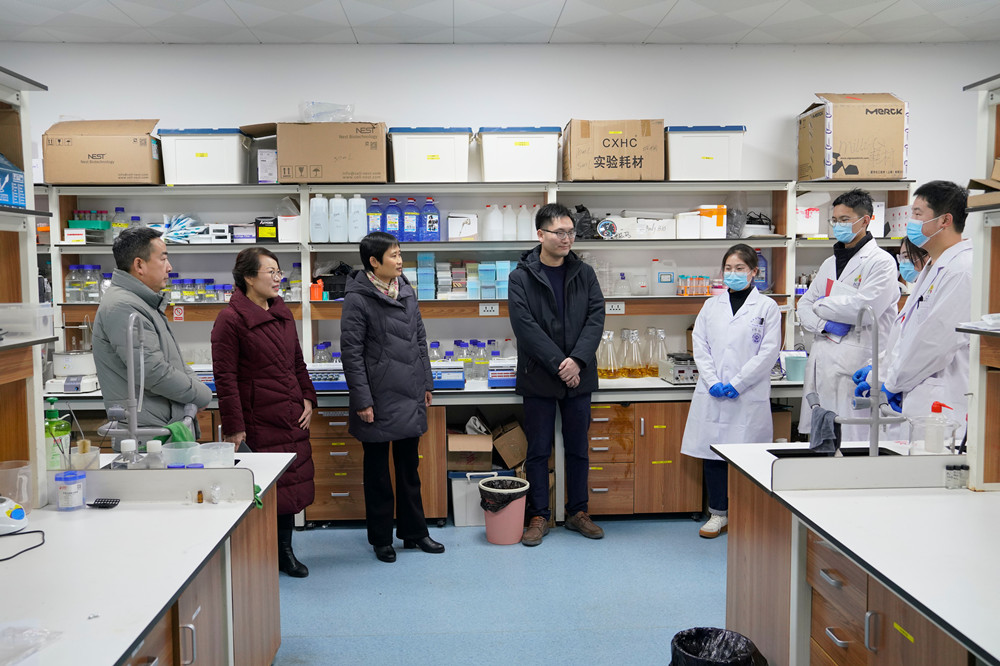 冯淑霞一行先后走进生命科学学院、特种功能材料教育部重点实验室、省部共建作物逆境适应与改良国家重点实验室等科研实验平台,与正在进行科研实验的研究生及在场导师、辅导员进行亲切交流,仔细询问了研究生的科研、学业及生活情况。她对留校研究生的科研劲头和精神状态给予充分肯定,并希望研究生能够充分利用学校优质的软硬件资源,全身心投入到科研学业中去,勇于探索、积极创新,多产出高质量研究成果。她殷切嘱咐研究生在做好科研的同时要重视个人身体健康,增强安全防范意识,遵守科学防疫规范。在得知个别研究生春节期间不回家过年时,她叮嘱相关部门要做好后勤保障和人文关怀,确保春节留校研究生能度过祥和温暖的佳节。
