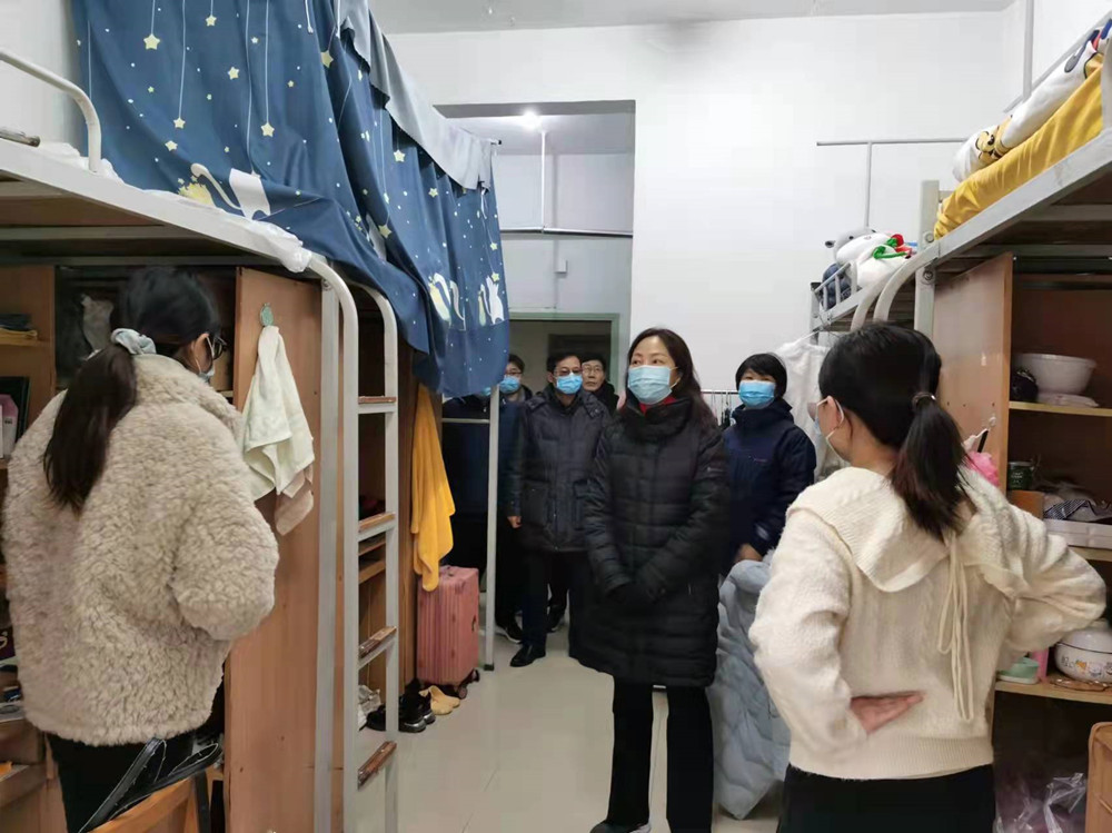 在金明校区,谭贞走进学生公寓,详细了解寒假期间留校学生情况,实地查看学生住宿安排,并听取留校学生对住宿保障工作的意见和建议。在南苑餐厅,她实地检查餐厨操作间卫生情况,并就切实做好寒假期间留校学生的用餐保障工作提出明确要求。在校内集中隔离点,她要求工作人员按规范流程做好隔离保障工作,并做好寒假期间的值班值守。在明伦校区,谭贞实地检查了施工现场和校园环境,就做好南门门面房拆除后绿化工作进行安排,并对加快推进在建工程进度和强化工程质量监督提出明确要求。