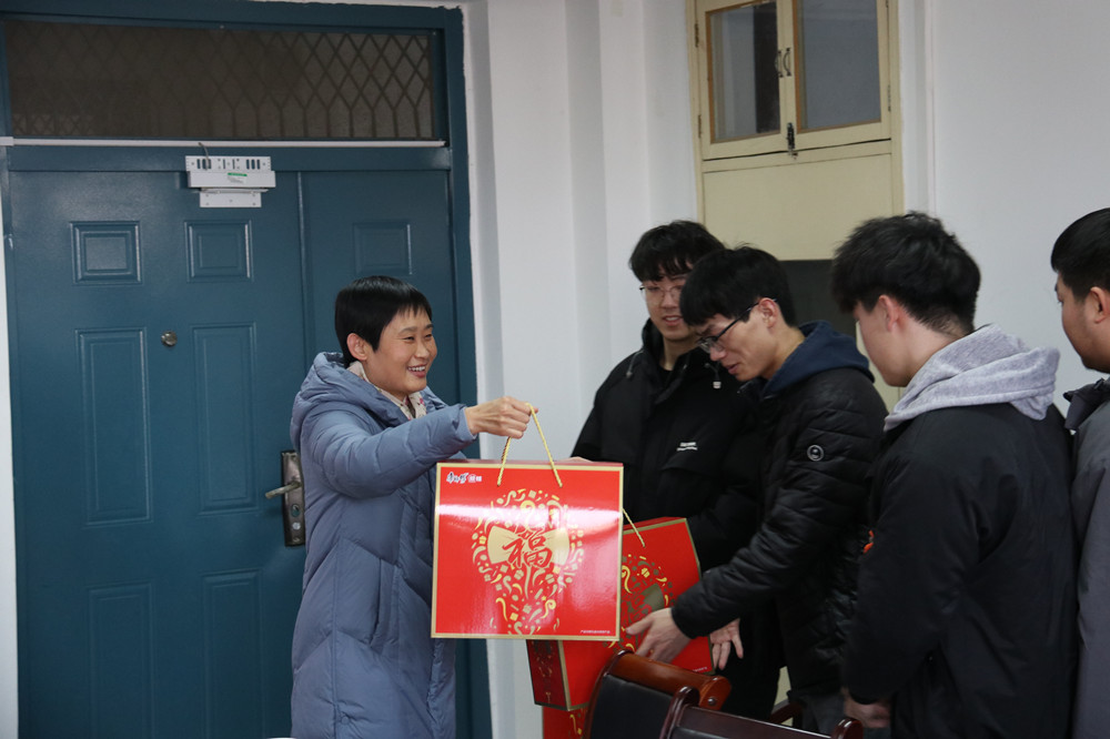 在虎年新春佳节即将来临之际,1月29日下午,校党委常委、副校长冯淑霞在学生处及相关学院负责同志的陪同下看望慰问了寒假留校学生,并为学生们送上了大礼包及新春祝福。