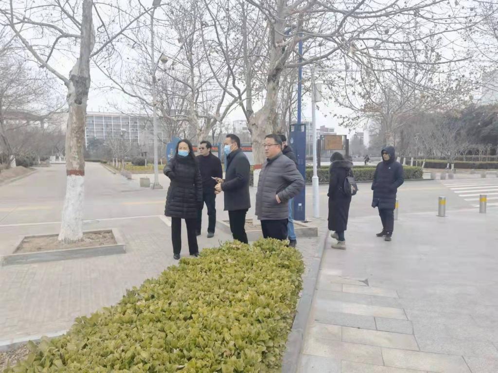 2月16日上午,校党委常委、副校长谭贞在金明校区,实地检查开学前校园环境和疫情防控工作。