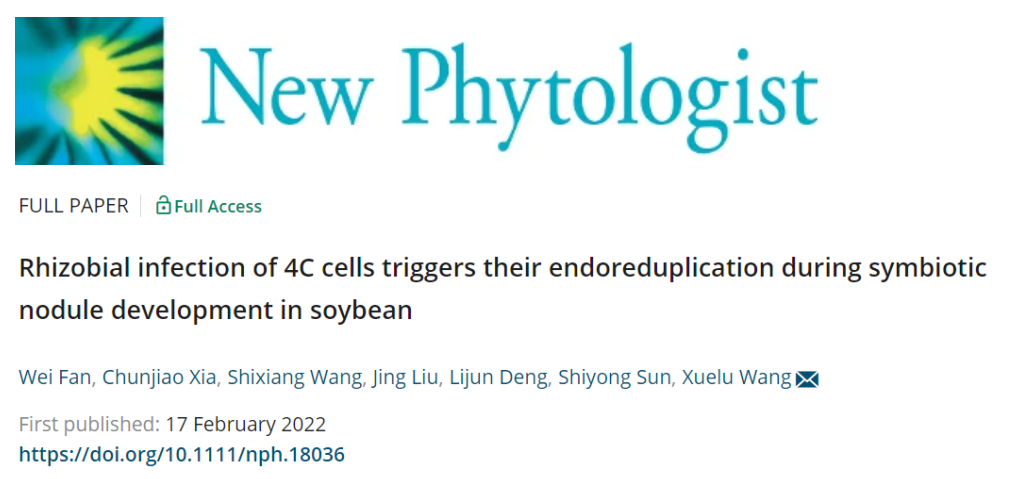 2月17日,河南大学王学路团队在国际著名学术期刊New Phytologist发表了题为“Rhizobial infection of 4C cells triggers their endoreduplication during symbiotic nodule development in soybean”的最新研究成果,揭示了根瘤菌侵染触发大豆共生根瘤细胞核内复制的机制。