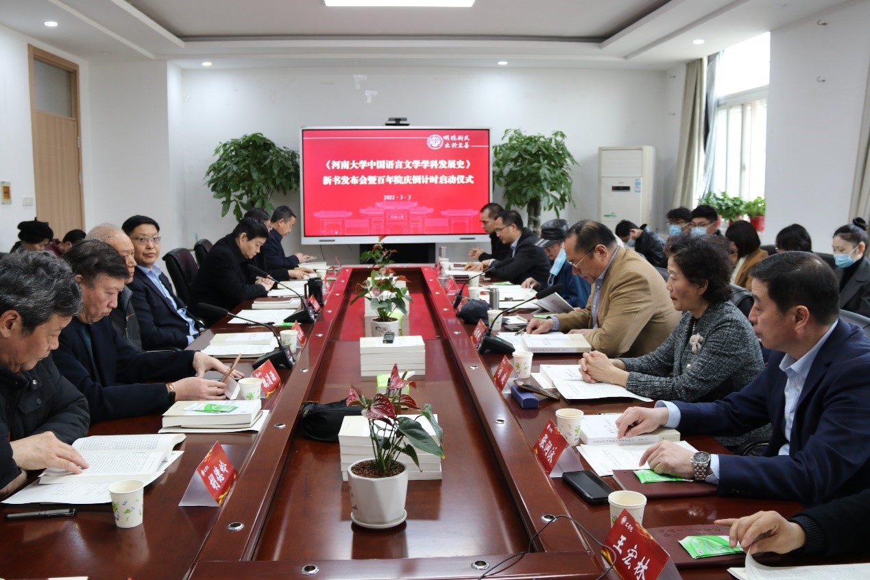 百年文脉,薪火相传。3月3日上午,《河南大学中国语言文学学科史》新书发布会暨百年院庆倒计时启动仪式在文学院二楼会议室举行,会议线上线下同步进行。河南大学原校长王文金,原党委书记关爱和,河南大学党委常委、副校长孙君健,校友基金会主任刘波,著名学者王立群教授,《河南大学中国语言文学学科史》作者魏清源教授,及历届校友代表一百余人欢聚屏幕内外,见证新书发布暨百年院庆倒计时启动仪式。文学院党委书记杨萌芽主持仪式。