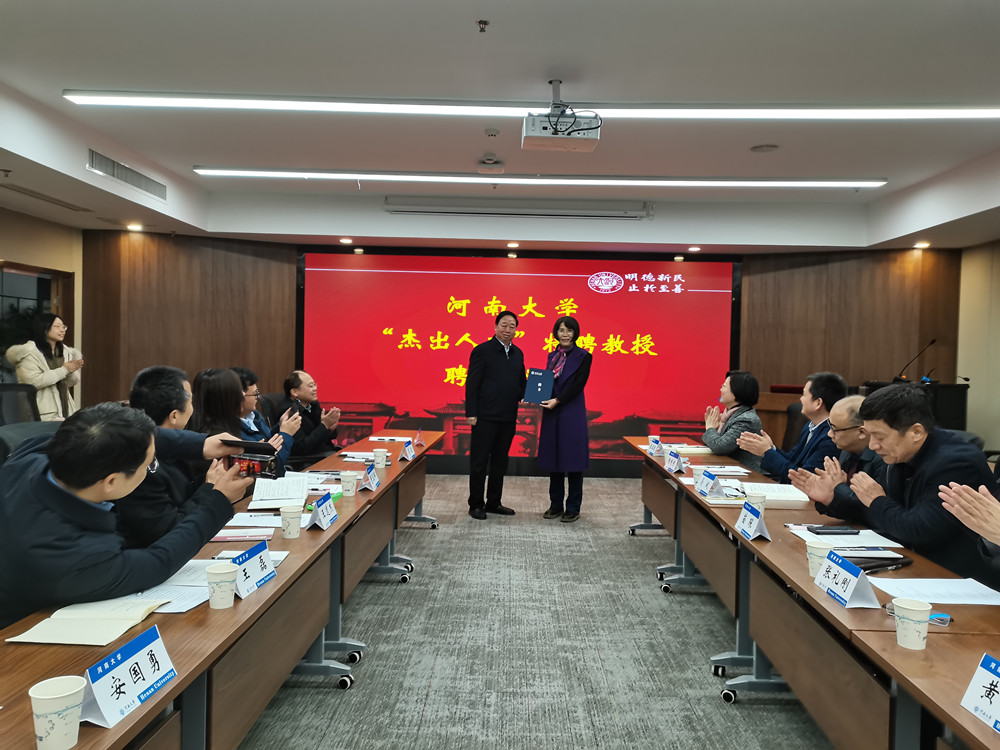 农学院执行院长王道杰介绍了黄继红教授基本情况。许绍康为黄教授颁发聘书。黄继红教授深情回忆了与河南大学的渊源,她表示,能够受聘为河南大学特聘教授深感荣幸,并将“明德新民,止于至善”的校训铭记在心,把更多的精力和时间放在科学研究上,在未来的工作中将秉承“匠心至诚,初心至远”的精神,以科学研究来带动学科建设和人才培养,与河南大学师生协同奋进,为河南大学“双一流”建设贡献力量。