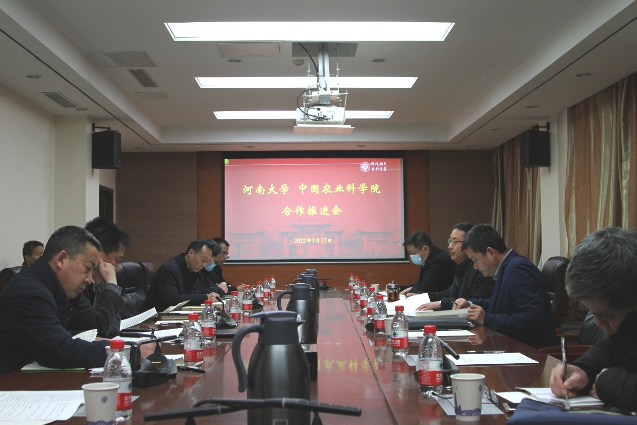 为深入服务国家粮食安全、乡村振兴、黄河流域生态保护和高质量发展战略,积极响应省委省政府创新驱动、科教兴省、人才强省战略要求,进一步拓展学校与中国农业科学院在科学研究、共建平台、学术交流、人才培养等方面的紧密合作,学校于3月17日召开与中国农业科学院合作推进会。副校长王学路出席并主持会议,人事处、实验室与设备管理处、三亚研究院、国内合作办公室、科学技术研究院、研究生院、生命科学学院、农学院、棉花生物学国家重点实验室、省部共建作物逆境适应与改良国家重点实验室等相关单位负责人参加会议。