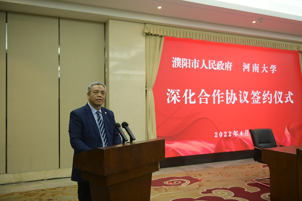 杨青玖表示,此次深化合作协议的签订,标志着双方的合作迈上新的台阶,必将全面开启优势互补、深度合作、协同发展的崭新局面。濮阳市将认真落实好协议内容,以全方位的服务保障、深层次的通力合作、多领域的配套政策,确保深化合作项目在濮阳落地落实、顺利实施,结出丰硕成果。希望河南大学充分发挥技术和人才优势,深度融入濮阳、深耕助力濮阳,让更多的前沿技术、科技成果在濮阳转化,让更多的人才在濮阳建功立业,为濮阳全面转型高质量发展注入强劲动力、增添更多活力。