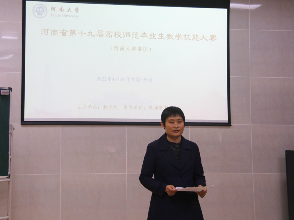 4月10日, 由教务处主办,教师教育学院承办的河南省教育厅第十九届高等学校师范类专业毕业生教学技能(河南大学赛区)比赛在明伦校区举行。校党委常委、副校长冯淑霞,学生处处长王友成,教务处处长张向东,校团委书记沙莎和教育学部常务副部长李永鑫等领导出席开幕式。河南大学附属中学教师担任本次大赛评委。