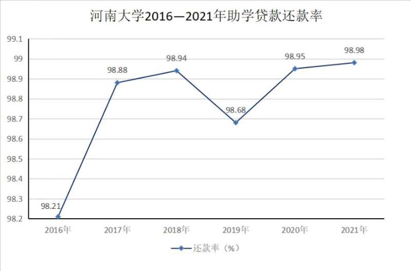 学校不断完善贷后管理机制,持续丰富服务手段,强化资助育人功能。通过持续深入开展“助学筑梦铸人”及“诚信校园行”主题活动、“助学贷款政策及诚信教育”宣传月活动、“资助政策乡村行”活动等,将“育人”贯穿于资助工作全过程,加强学生励志教育、诚信教育、感恩教育及社会责任感教育,不断提高学生还款的积极性和主动性。2021年,全校到期贷款还款率为98.98%,同比增长0.03%,较全省平均还款率高0.53个百分点。