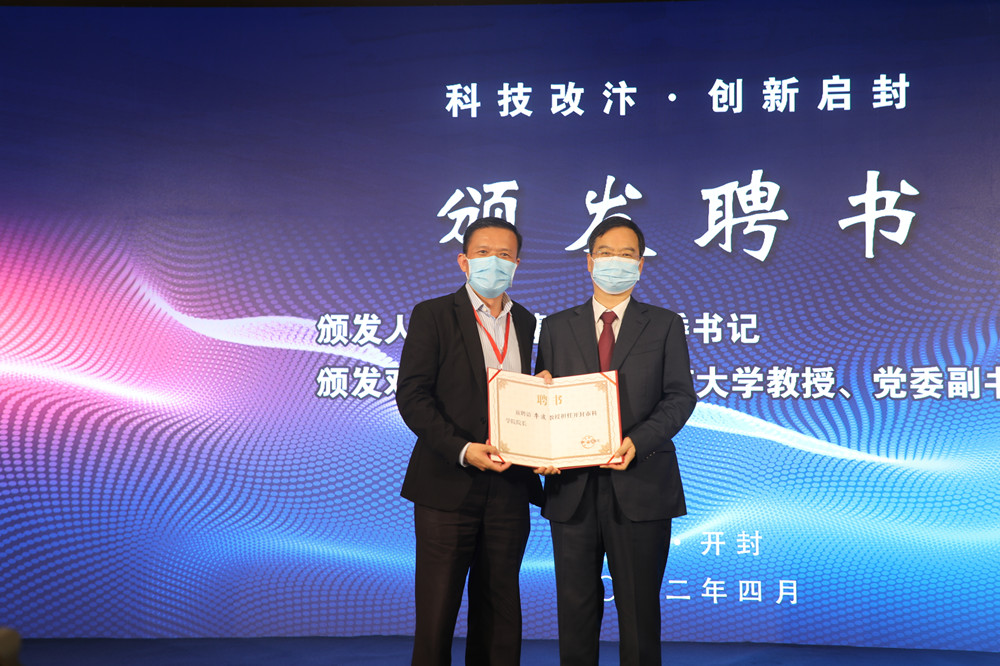 仪式上,市委常委、市委组织部部长杨克俊宣读了组建开封市科学院和科学院院长任命文件。我校党委副书记季波被聘为“开封市科学院院长”,市委书记高建军为其颁发了聘书。