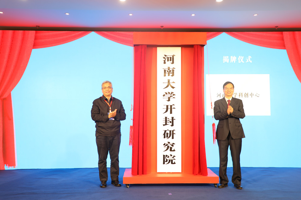 高建军、中国工程院院士张新友共同为“开封市科学院”揭牌;高建军、我校党委书记卢克平共同为“河南大学开封研究院”揭牌;市委常委、常务副市长付磊和陈凯杰共同为“开封综合保税区管理委员会”揭牌。