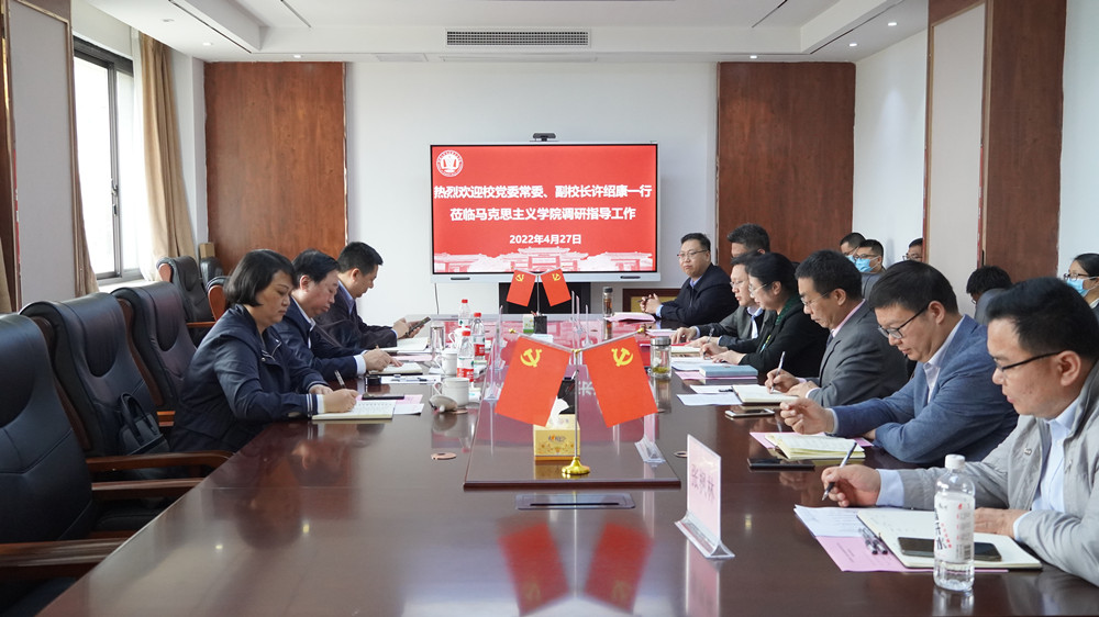 4月27日上午,校党委常委、副校长许绍康到马克思主义学院调研指导工作。党委教师工作部部长、人事处处长张礼刚,校长办公室副主任常凤香陪同调研,马克思主义学院党政班子成员、两办负责人、教师代表参加调研座谈会。调研座谈会由马克思主义学院党委书记彭绪琴主持。