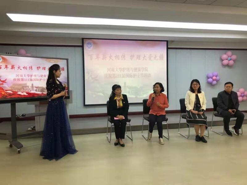 活动在历届毕业生的祝福视频及手语表演《中国护士之歌》中拉开序幕。李瑞玲首先致辞:在新时代背景下,恰逢学校第二轮“双一流”建设开局年,学院将进一步坚定信心,开拓创新,为推动健康中原建设、推动护理高等教育发展和助力 “双一流”建设作出新的贡献。
