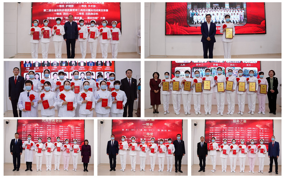 有责任有担当,青春才会闪光!在过去的2021年,医院涌现了一批又一批积极进取、勇于奉献的优秀护理集体和个人。尤其是在疫情发生以来,全院护理工作者不负党和人民重托,白衣为甲、逆行出征,不惧艰险、连续作战,圆满完成省市卫健委和学校的各项指令性任务。会上,淮河医院党委副书记傅侃达宣读了《河南大学淮河医院关于2021年度“优质护理服务”优秀评选表彰活动的通知》,先进集体和个人代表依次上台领奖。