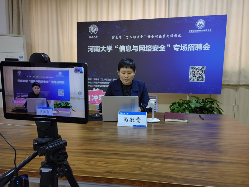 5月12日,为带动我校相关专业毕业生到网络安全行业就业,河南省“万人助万企”工作组、河南省信息安全保密协会与我校联合组织开展的河南省“万人助万企”校企对接系列活动——2022河南大学“信息网络与安全”线上直播专场招聘会举办。