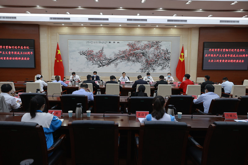5月17日,开封市召开学习贯彻习近平总书记在庆祝中国共产主义青年团成立100周年大会上的重要讲话精神座谈会,市委书记高建军、市委常委、市委组织部部长杨克俊,市委常委、市委秘书长张松文,副市长钱忠宝等领导出席,农学院副院长李浩等开封市9位优秀青年代表应邀参加座谈会。座谈会由市委副书记、市委政法委书记卢志军主持。