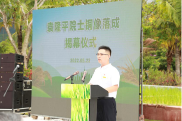 5月22日,是“杂交水稻之父”、中国科学院院士、共和国勋章获得者袁隆平先生逝世一周年纪念日。上午10时,袁隆平院士铜像落成揭幕仪式在三亚水稻国家公园举行。海南省委常委、三亚市委书记周红波,袁隆平家人代表、杂交水稻国家重点实验室副主任袁定阳,三亚市委副书记、市长包洪文,“野败”发现者之一冯克珊,海南省农业农村厅、农业科学院、海南大学以及相关单位领导出席仪式。我校三亚研究院海南专项2021级博士研究生李文辉、王国瑞作为学生代表参加仪式,李文辉作为研究生代表在揭幕仪式上发言。