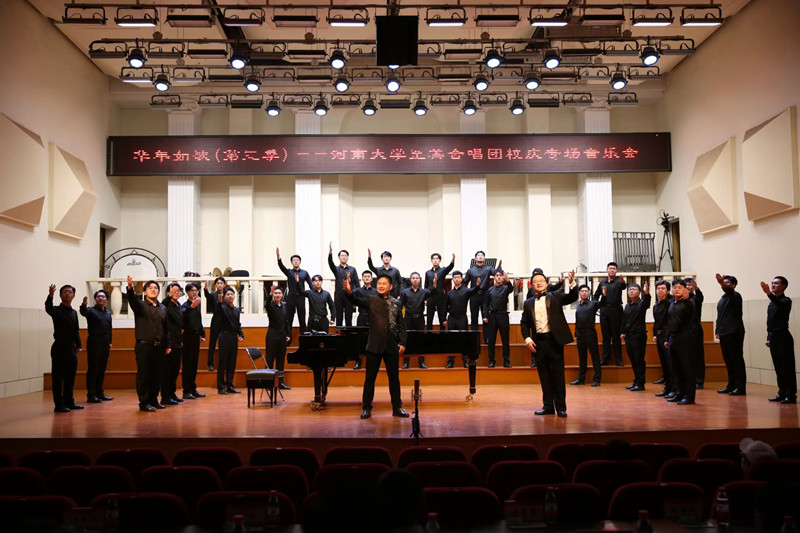 合众人之力,唱艺术人生。5月26日晚,作为音乐学院庆祝河南大学建校110周年系列活动之一,华年如歌(第三季)——河南大学至善合唱团校庆专场音乐会在音乐厅举办。校党委常委、副校长谭贞,校党委常委、副校长许绍康,河南大学原副校长王发曾,校党委巡察工作办公室主任闫峻,保卫处处长王志乾,招生办公室主任樊小勇,校庆办公室副主任赵东保,校党委宣传部副部长乔石豪、赵晓芳,音乐学院班子成员及师生代表一同观看了本场演出。音乐会采用线下演出和线上同步直播形式进行。音乐学院承训的2021“国培计划”河南省中小学音乐教师培训班的学员们线上共同观看了本场音乐会。