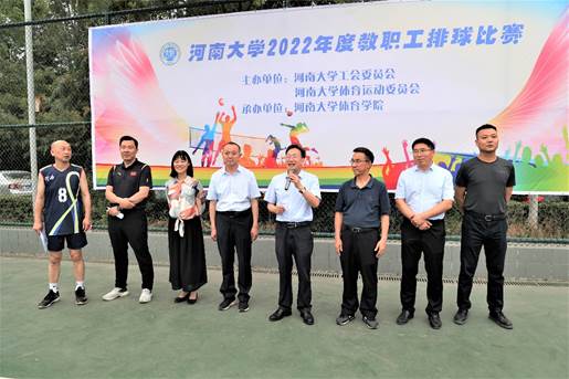 张宝明在致辞中指出,全体参赛教职工精心准备、全情投入,奉献出了最精彩的表现,充分展示了河大教工风采,凝聚了共同奋进的力量。通过比赛,团队精神得以体现,单位凝聚力得到加强,展现出学校教职工团结协作、积极进取、乐观向上、奋勇争先的精神风貌。2022年是我校建校110周年,也是河南大学在新的历史起点上开启新征程、在新的发展方位中再创新伟业的关键一年。希望校工会和校体委多举办群众性强、参与度高、教职工喜爱的文体活动,丰富教职工文化生活,提高教职工身体素质,团结动员广大教职工为学校“双一流”建设和事业发展作出新的、更大的贡献,以优异成绩庆祝建校110周年华诞,迎接党的二十大胜利召开!