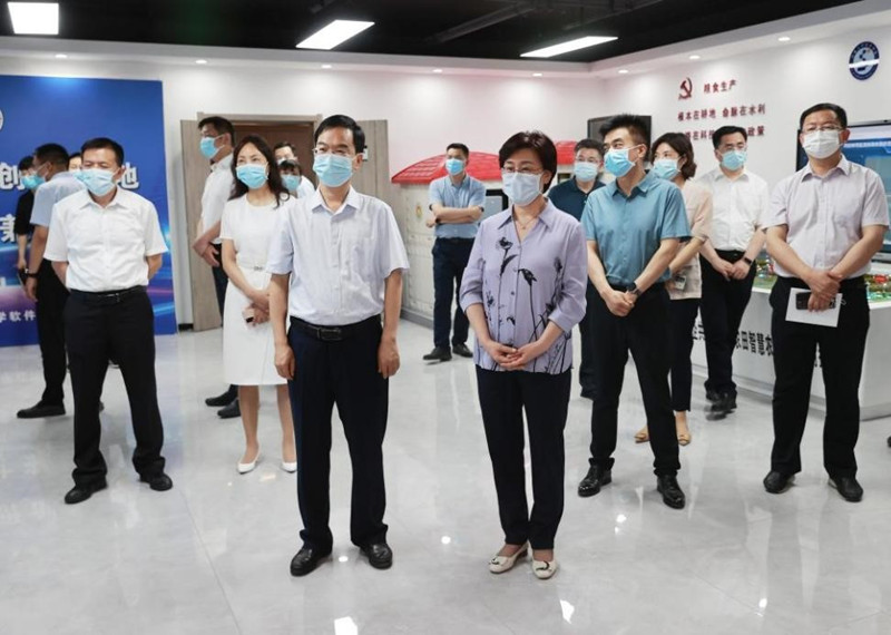 6月9日,省科技厅党组书记、厅长,省科学院党委书记陈向平,省科学院党委委员、副院长李兵,省科技厅二级巡视员陶曼晞一行到河南大学开封研究院及省部共建作物逆境适应与改良国家重点实验室调研。期间,陈向平一行参观了软件学院在开封研究院的研发场地——河南省智能数据处理工程研究中心及省部共建作物逆境适应与改良国家重点实验室部分课题组和抗逆改良中心的高通量表型平台。开封市委书记高建军,开封市副市长刘震,河南大学党委常委、副校长谭贞,校党委副书记、开封市科学院院长季波,副校长王学路,学校相关单位负责人等陪同调研。