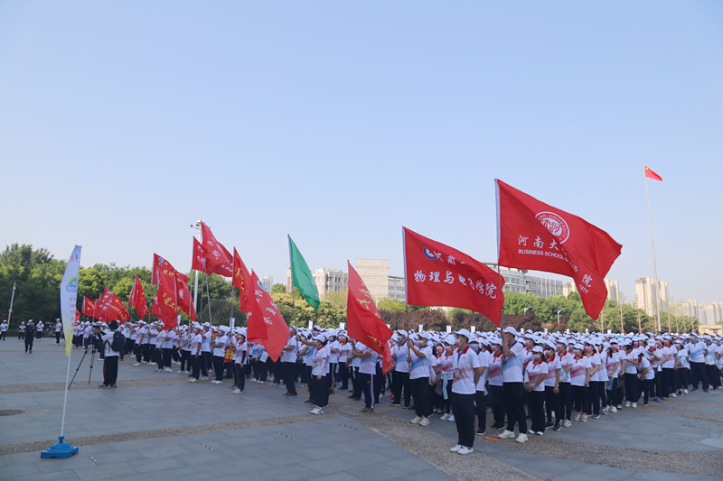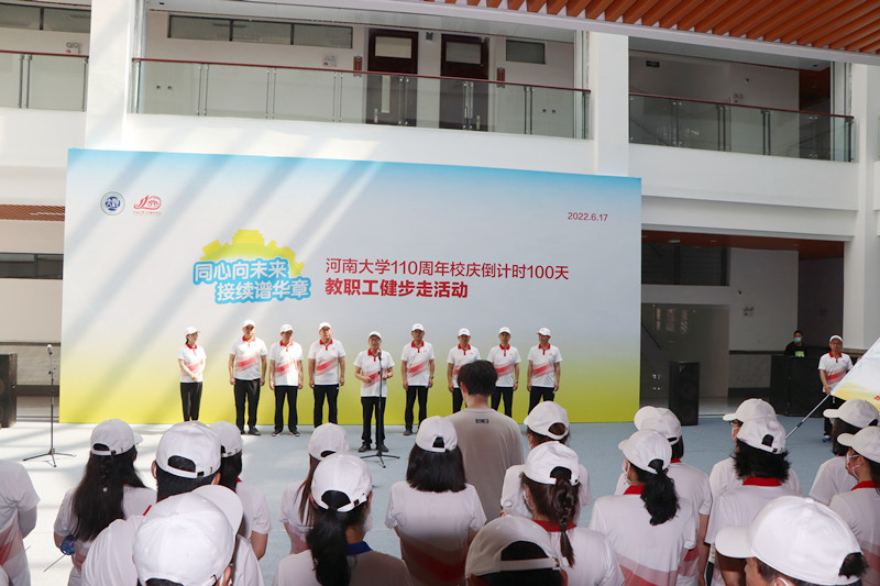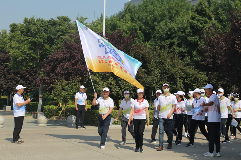 晴日暖风生麦气,绿阴幽草胜花时。6月17日,我校郑州校区和开封明伦校区、金明校区内旌旗招展、群情热烈。由校庆办公室和校工会主办,音乐学院、体育学院、美术学院、至善书院承办的“同心向未来,接续谱华章”——河南大学110周年校庆倒计时100天教职工健步走活动在三个校区接续举行。全校4000余名教职工用健步行走校园的方式,表达对学校的祝福与热爱,传递内心的喜悦与希冀,展现建设“双一流”的精神与风采。110周年系列庆典活动自此正式拉开了帷幕!