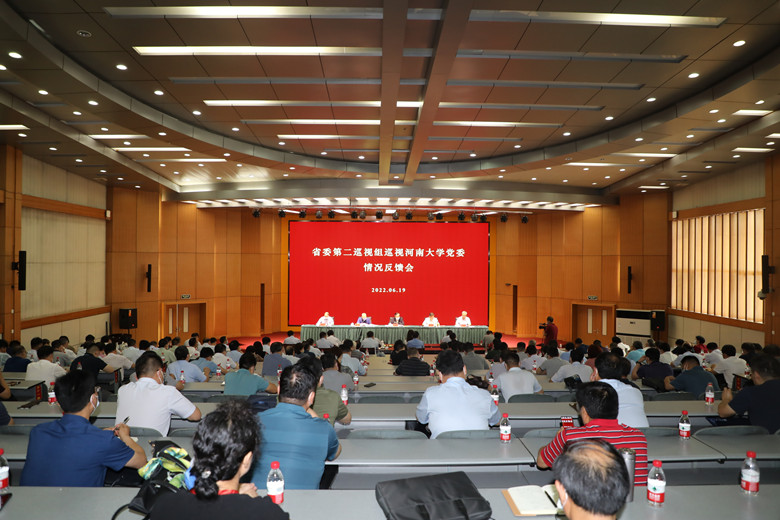 根据省委巡视工作领导小组的部署,6月19日,省委第二巡视组向河南大学党委反馈巡视情况。正厅级巡视专员、省委第二巡视组组长李志强主持召开向河南大学党委书记卢克平的反馈会议。在向河南大学党委领导班子的反馈大会上,李志强反馈了巡视情况,省纪委副书记、省监委副主任、省委巡视工作领导小组成员刘国栋对河南大学巡视整改工作提出要求。卢克平主持反馈大会并就做好巡视整改工作作表态讲话。