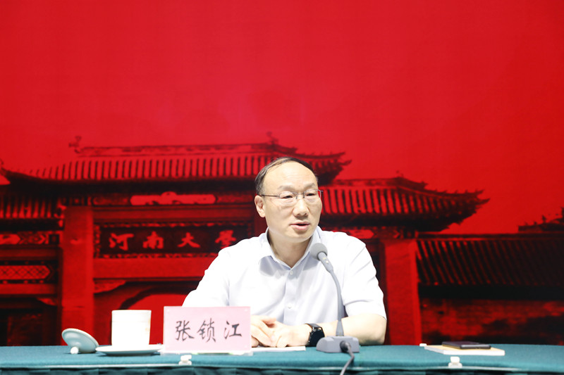 张锁江表示,河南大学未来发展需要全校各级领导干部和全体师生共同努力。一是要提高政治站位,凝聚广泛共识,锚定研究型综合性一流大学发展目标不动摇。建设“双一流”、打造河南高等教育“双航母”是省委、省政府重要战略决策,饱含亿万河南人民对高质量教育的殷殷期盼。全校各级领导干部要进一步统一思想认识,提高政治站位,牢固树立大局意识,锚定研究型综合性世界一流大学战略定位不动摇,对标世界一流大学发展指标体系,胸怀理想、团结协作、担当实干,坚定不移地推进河南大学高质量发展,为实现百年名校振兴梦想不懈奋斗。二是要创新体制机制,探索办学新路,打造“学院-研究院-基地”三位一体创新链条和模式。要打通“学院-研究院-基地”整个链条,探索形成三者相互支撑、张弛有度、互补发展的良性循环;要理顺各类关系,突出各基层单位主体地位,鼓励跨学科交叉创新,提高整体效能,形成教学教育和科技创新相互促进、融合发展的新型组织体系;要循序渐进推进学部制改革,激发发展活力和动力。三是以人才带学科,大力引进和培育人才团队,实施分类评价,激发创新活力。要围绕“研究型综合性大学到底需要什么样的人才”这个根本问题,坚持人才引育并举,把人才团队培养引进作为重中之重,构建学科建设与人才队伍建设有机结合的机制;要积极探索人事制度改革、分类评价机制和绩效考核管理方法,激发现有人才活力;要创新用人机制,探索预聘—长聘制度和本硕博一贯制培养体系。四是以任务带学科,积极争取国家及省部级重大任务,促进重大产出。要建立健全牵头学院或研究院主体责任,主动对接国家和区域重大战略需求,坚持“四个面向”,依托学校综合性大学学科、人才和平台优势,聚焦重大科学问题、卡脖子科技难题和重大民生问题,从全校层面组织队伍,争取国家重大研发计划、重大国际合作项目、重大企业研发项目等,以项目促产出,特别是标志性重大科技创新成果,力争获得国家及省部级奖励。五是要积极提升教学和科研条件,在国家科研体系重组中争先机,构建协同创新发展的大平台和大格局。要加快建设郑州校区,进一步明确细化功能定位以及今后的使用和入驻规划方案,将其建成国际一流高水平研究型校区;要积极吸取现有国家级实验平台经验,聚焦国家重大战略需求,布局建设一批国家级创新平台;要加快生命科学、医学、新能源、信息化等新兴学科建设,推动重塑学科体系;要加大力度改造提升学校基础设施,最大限度为师生工作和学习提升幸福感。六是要坚持目标导向,加强绩效考核,切实提升学校综合治理水平。各单位要设定未来五年学科影响力、高层次人才、科研项目、科研经费、标志性成果等具体指标,并将其分解成年度任务指标,责任到人;要建立监督检查和考核机制,加强考核结果的运用,做到“目标清、可考核、能干成、有成效”。七是要加强文化建设,凝聚发展活力,努力营造宁静平和、奋发向上的一流学术生态和文化氛围。要牢固树立“以师生为中心”的发展理念,深入到师生群体中去,倾听师生发展诉求,及时回应师生关切,做好广大师生的勤务员,凝聚起广大师生建设“双一流”的磅礴热情,共同推动学校事业高质量发展。