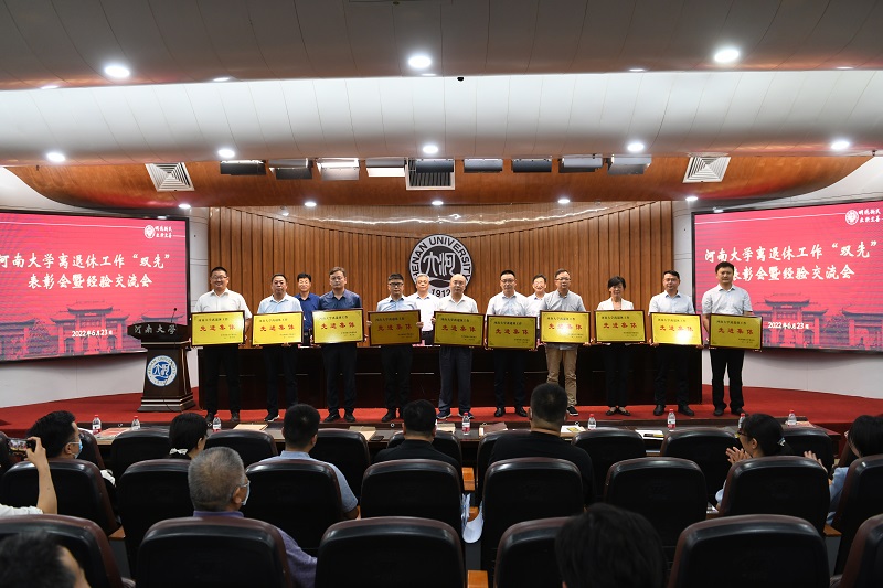 张宝明宣读《中共河南大学委员会关于表彰河南大学离退休工作先进集体与先进个人的决定》。经济学院、化学化工学院、幼儿园、新闻与传播学院、外语学院、图书馆、文学院、历史文化学院、地理与环境学院、药学院10个单位获得“离退休工作先进集体”荣誉称号,于美玲等69名同志获得“离退休工作先进个人”荣誉称号。