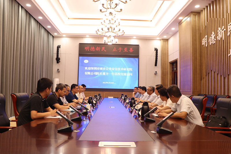 6月24日下午,校党委书记卢克平在郑州校区友兰学堂中楼502室,会见深圳市城市公共安全技术研究院院长董方一行,校党委常委、副校长许绍康,学校相关职能部门负责人参加会见。