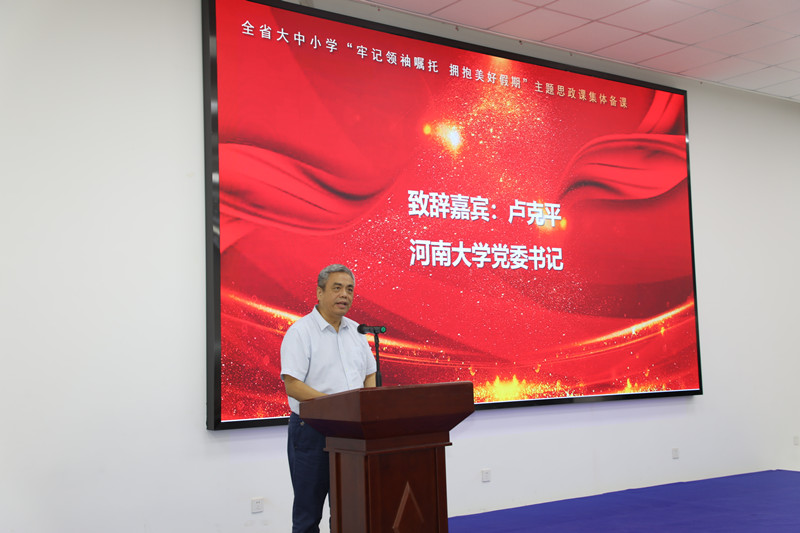 6月27日上午,由中共河南省委教育工委和河南省教育厅主办、河南大学和开封市教育体育局承办的全省大中小学思政课集体备课展示活动在我校明伦校区逸夫科技馆一楼报告厅举办。该活动以“牢记领袖嘱托,拥抱美好假期”为主题,以“寻访总书记河南足迹,重温总书记殷殷嘱托”为主线,聚焦“教育引导青少年过一个有意义的暑假”这一教学目标,精心凝练备课主题,细致打磨展示课程,并通过线上同步直播的方式,向全省大中小学教师展示了精彩的思政课堂。中共河南省委教育工委专职副书记尹洪斌,我校党委书记卢克平,开封市委副书记、政法委书记卢志军出席活动并致辞。省教育厅思政处相关负责人,开封市委宣传部、开封市教育体育局、我校党委宣传部、马克思主义学院相关负责人,以及全省大中小学思政课一体化建设指导委员会的相关专家参加会议。活动由我校党委常委、宣传部部长王明钦主持。