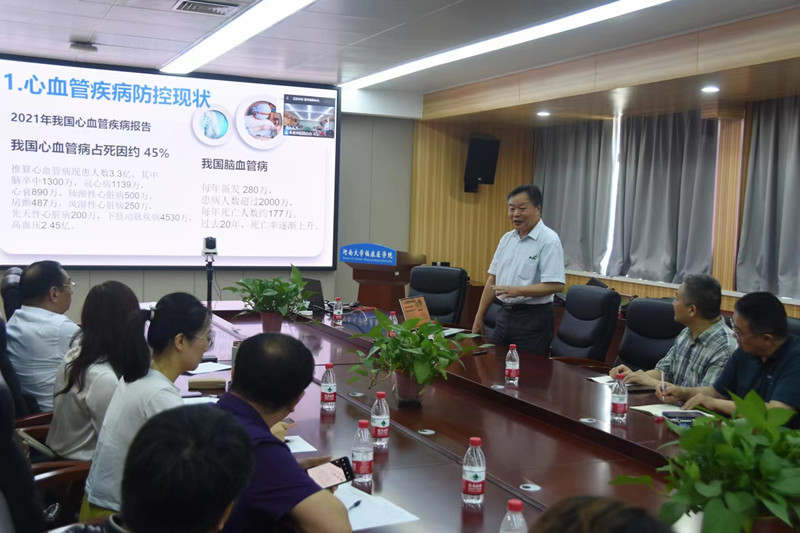 6月28日上午,医学院创新医学大讲坛在金明校区曾宪梓楼2楼学术报告厅举行。中国医学科学院、中国协和医科大学药物研究所副所长杜冠华教授作了题为“缺血性心脑血管疾病防治药物研发进展”的报告。校党委常委、副校长、医学院党委书记孙君健,医学院及所属各专业学院、医院及科研机构领导班子成员,副科级以上管理干部、临床科室主任,45岁以下专任教师、医师,以线上线下的形式在各单位分会场参会。孙君健主持讲坛。