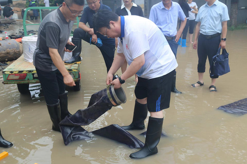 近日,受强降雨天气影响,我校明伦、金明校区校园内部分区域积水严重,学校总务处(后勤集团总公司)、保卫处等部门同志保持高度警惕性和责任感,积极奋战在防汛抢险救灾第一线。校党委常委、副校长谭贞,校党委常委、副校长许绍康第一时间到现场指导防汛抢险救灾工作。
