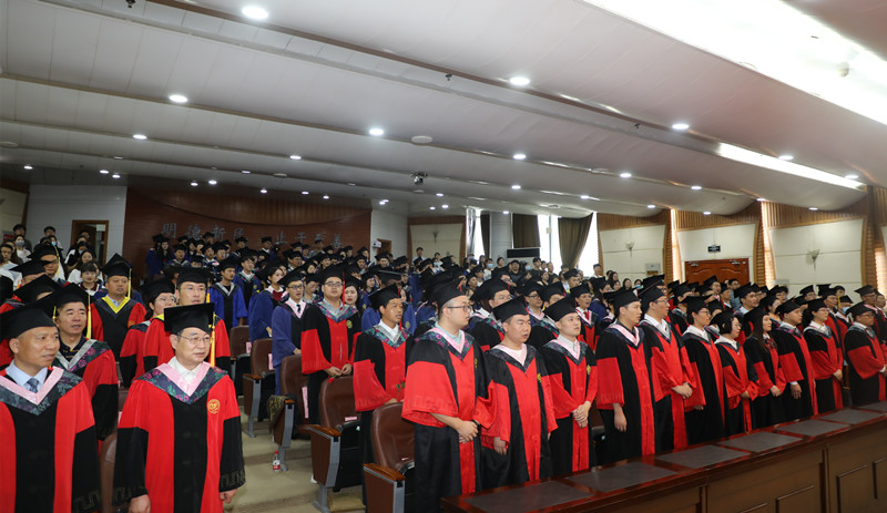 凤凰花开季,旭日初升时。又是一年毕业季,又到一年离别时。7月5日上午,我校2022年研究生毕业典礼暨学位授予仪式在金明校区行政楼二楼报告厅举行。全体在校校领导、校学位委员会委员、教师代表、研究生毕业生辅导员、在校2022届研究生毕业生代表在现场参加典礼,其余2022届研究生毕业生在线上参加典礼。典礼由校党委常委、副校长冯淑霞主持。
