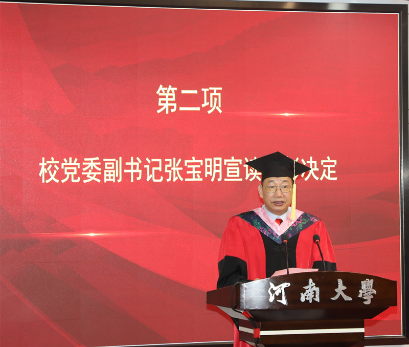 校党委常委、副校长谭贞宣读了《河南大学关于授予毕业研究生博士学位和硕士学位的决定》。