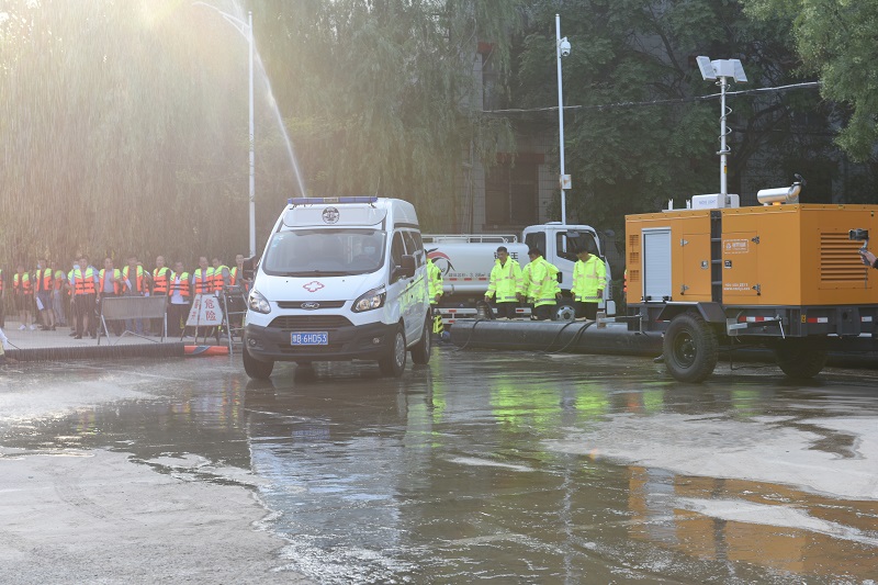 演练预设开封突降大到暴雨,明伦校区干部培训中心(继续教育学院)周边积水严重,师生生命和公共财产安全受到威胁;学校防汛抢险指挥部启动应急反应机制,组织明伦校区相关单位防汛抢险突击队到达现场展开救援。演练现场,6个抢险救援小组按照指挥部命令,迅速切断严重积水区域电源,运送沙袋对相关楼宇进行封堵,对救援现场进行警戒封控,启动应急照明电源,使用大排量抽水车抽排积水,搜救转移宿舍楼内被困人员,对受伤的防汛突击队员进行紧急医疗救护。全体参演队员精神饱满、态度认真、分工协作、行动迅捷,演练任务圆满完成,达到了以演促防、以练代战的目的。