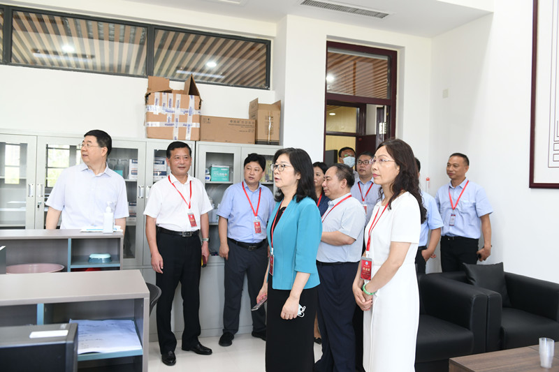 考察过程中,毛杰一行对项目培训专用教室、会议室、办公室、报告厅的建设及使用情况进行了参观和了解。在培训专用教室,考察团一行查看了教学设施与环境,了解教室的基本情况。在项目办公室,蔡建东书记向各位领导详细介绍了项目办的基本情况、工作开展情况。
