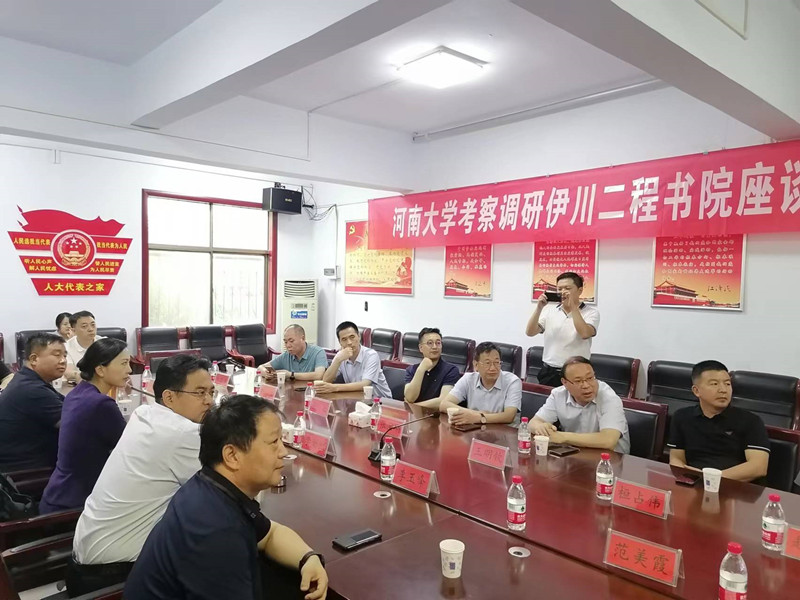 为了进一步推动学校文化传承与创新工作,开展校地合作,助推河南大学明道书院建设,7月19日上午,河南大学党委副书记张宝明,党委常委、宣传部部长王明钦、中国社会科学院展龙教授、河南大学人文社科研究院院长桓占伟、宣传部副部长赵晓芳、新闻传播学院副院长杨波等相关部门同志一行组成调研组赴洛阳市伊川县开展实地考察。洛阳市副市长、伊川县委书记李新红,伊川县委常委、宣传部部长梁纪朋,伊川县鸣皋镇党委书记李玉峰,伊川县文化广电和旅游局党组书记赵校辉等参与活动。