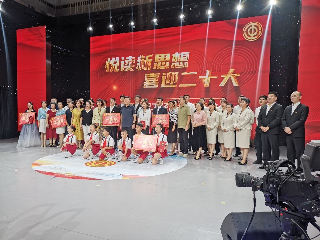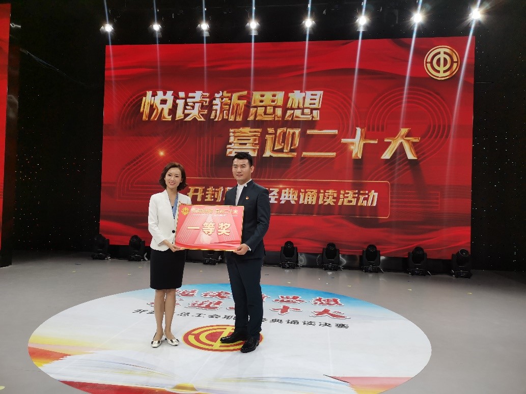 7月21日上午,由开封市总工会主办、开封广播电视台承办的“悦读新思想 喜迎二十大”开封市职工经典诵读活动,在开封市广播电视台一号演播厅进行决赛。我校工会选送的《念奴娇·追思焦裕禄》由党委办公室王娇娇、新闻与传播学院栗江豪两位老师深情诵读。经过激烈角逐,我校荣获一等奖。