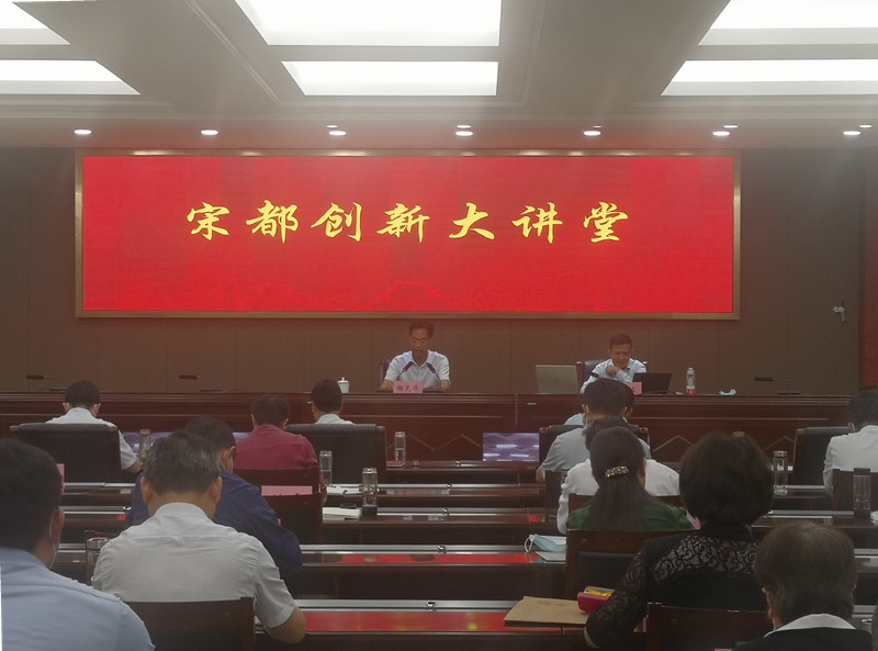 7月22日上午,由开封市委组织部、市“能力作风建设年”活动领导小组办公室主办的“宋都创新大讲堂”第三期学习报告会举行。校党委副书记、开封市科学院院长季波应邀作题为《区域经济发展与城市品牌塑造》的专题报告。全校各单位中层以上领导干部通过直播方式进行观看。